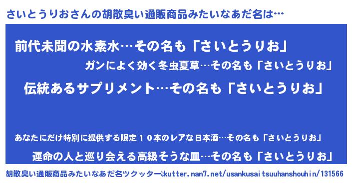 | 意味不明あだ名 | 『とにかく怪しいさいとうりお』 |