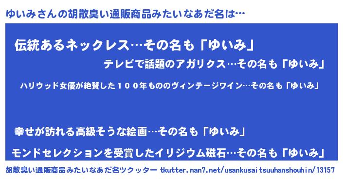| 意味不明あだ名 | 『住所不定無職ゆいみ(13歳)』『自称ゆいみ』 |