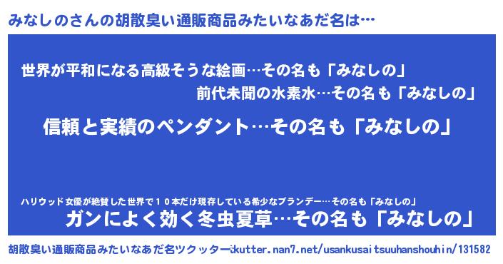 | 意味不明あだ名 | 『とにかく怪しいみなしの』 |