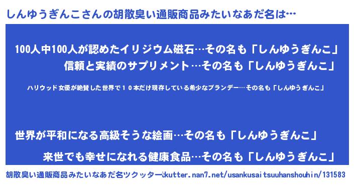 | 男性向けラノベタイトル風あだ名 | 『魔弾の王としんゆうぎんこ』 |