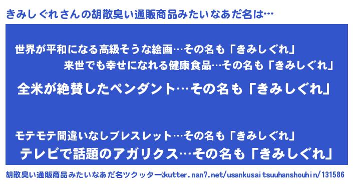 | 男性向けラノベタイトル風あだ名 | 『きみしぐれ~年齢イコール彼女いない歴の魔法使い~』 |