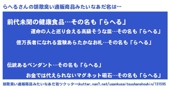 | ヘコむあだ名 | 『らへもー』『らへる(笑)』 |