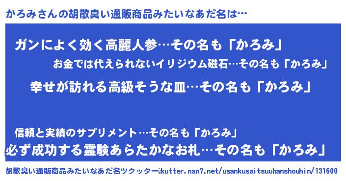 意味不明あだ名 | 『かろみフォーエバー』『自称かろみ』 |