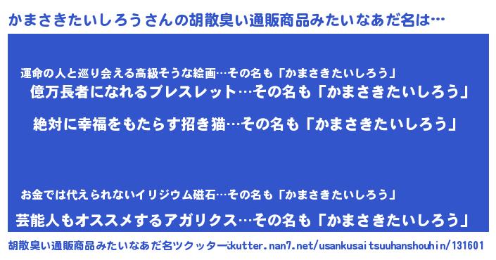 | 意味不明あだ名 | 『永久保存かまさきたいしろう』 |