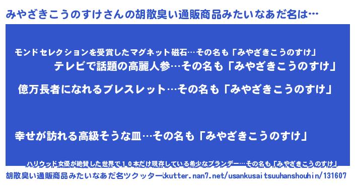 みやざきこうのすけさんの胡散臭い通販商品みたいなあだ名をツクッター!