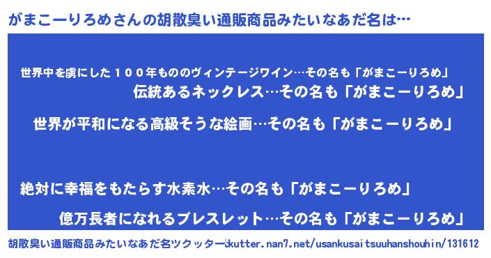 | 欧米人風あだ名 | 『がまこーりろめクリステル』 |