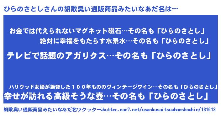 | ヘコむあだ名 | 『豆乳』『ひらのさとし(笑)』 |
