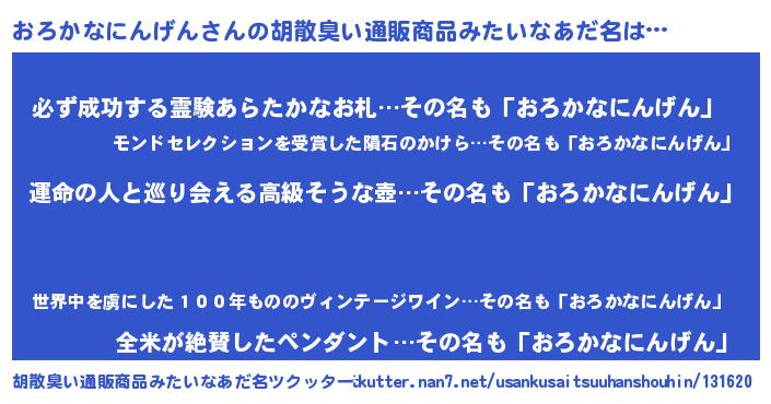 | 意味不明あだ名 | 『おろかなにんげんフォーエバー』 |