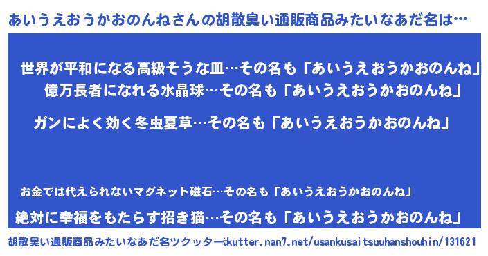 | 恥ずかしいあだ名 | 『アイウエオウカオノンネデラックス』 |