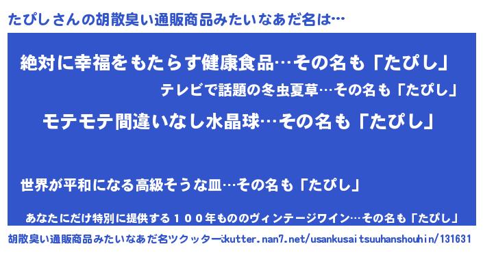 | 意味不明あだ名 | 『ペロリンたぴし』『永久保存たぴし』 |