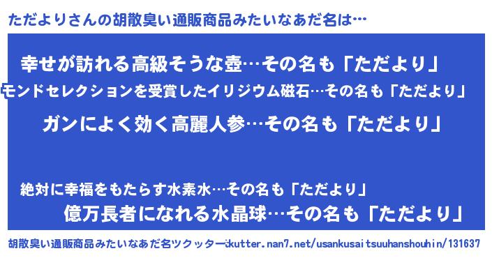 | 意味不明あだ名 | 『自称ただより』『ただよりフォーエバー』 |