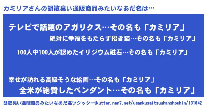 | 男性向けラノベタイトル風あだ名 | 『はたらくカミリアさま!』 |