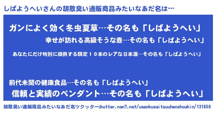 | 男性向けラノベタイトル風あだ名 | 『この素晴らしい世界にしばようへいを!』 |