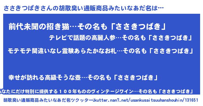 | 恥ずかしいあだ名 | 『プリティーささきつばき』『ささちん』 |