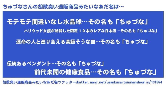 | 意味不明あだ名 | 『ちゅづなフォーエバー』 |