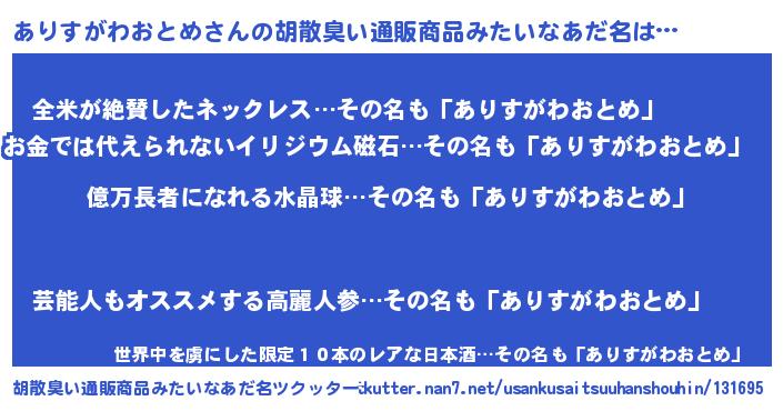 | 欧米人風あだ名 | 『マイケルありすがわおとめ』 |