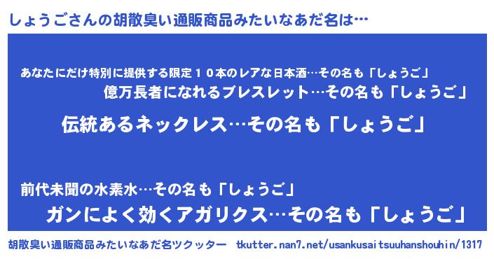 | 意味不明あだ名 | 『とにかく怪しいしょうご』 |