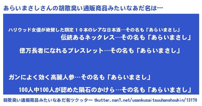 | ヒーロー風カッコイイあだ名 | 『スーパーアライマサシ』『仮面アラダー』 |