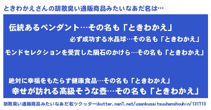 | ヘコむあだ名 | 『ときぷりん』『なまこ酢』 |