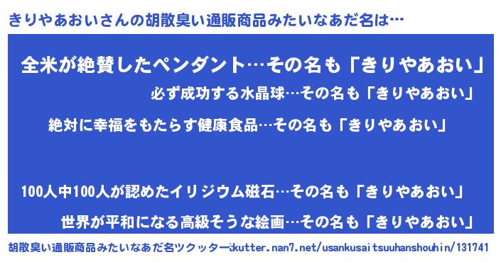 | 意味不明あだ名 | 『永久保存きりやあおい』 |