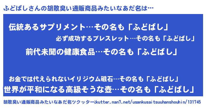 | ヘコむあだ名 | 『ふどばし(苦笑)』『ふどを』 |