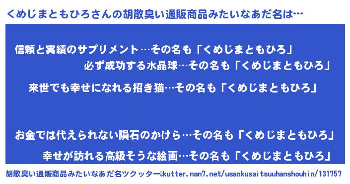 | ヘコむあだ名 | 『くめじまともひろ(小並感)』『くめを』 |