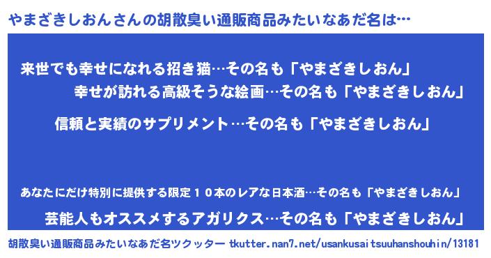 | ヘコむあだ名 | 『やまを』『やまざきしおん(笑)』 |