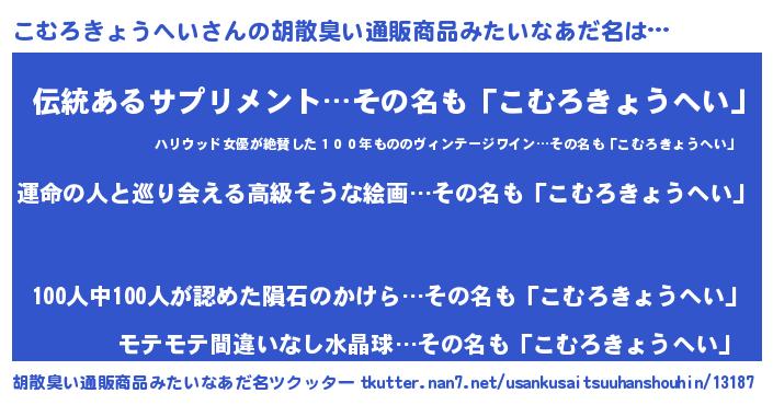 | 意味不明あだ名 | 『こむろきょうへいフォーエバー』 |