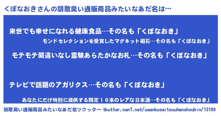 | 男性向けラノベタイトル風あだ名 | 『くぼなおきに滅ぼされるだけの簡単なお仕事です』 |