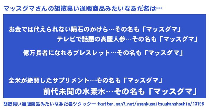 | ヘコむあだ名 | 『マッふぇ~』『マッスグマ(遠い目)』 |