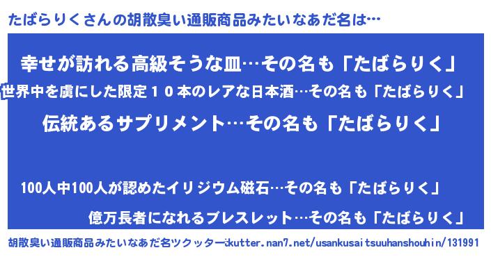 | 男性向けラノベタイトル風あだ名 | 『ダンジョンにたばらりくを求めるのは間違っているだろうか』 |
