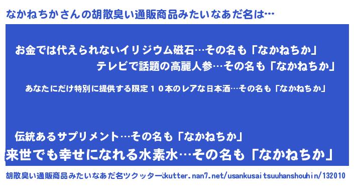 | 意味不明あだ名 | 『住所不定無職なかねちか(62歳)』 |