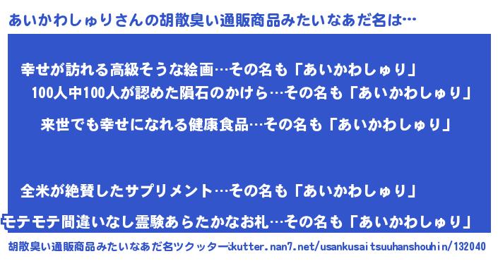 | 意味不明あだ名 | 『永久保存あいかわしゅり』 |