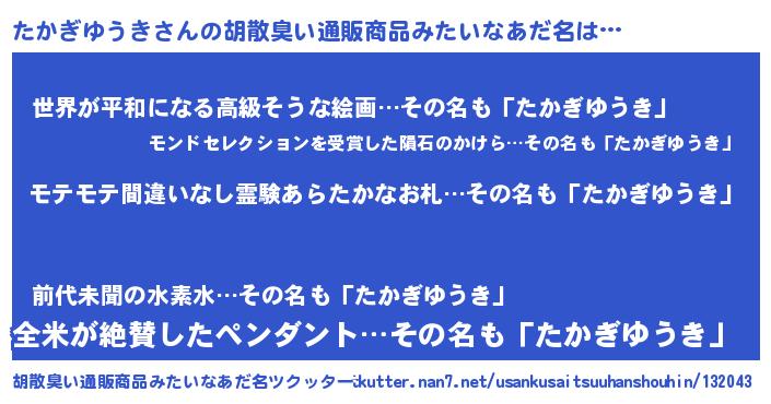 | 恥ずかしいあだ名 | 『プリティーたかぎゆうき』『たかっちょ』 |