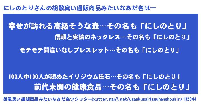 | ヘコむあだ名 | 『にしにー』『牛乳』『にし太郎』 |