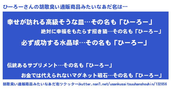 | ヘコむあだ名 | 『ひーもー』『牛乳』『ひーろー(笑)』 |