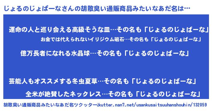 | 男性向けラノベタイトル風あだ名 | 『ジョルノジョバーナアートオンライン』 |