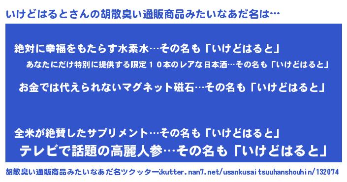 | ヘコむあだ名 | 『いけどはると(小並感)』『いけっちょ』 |