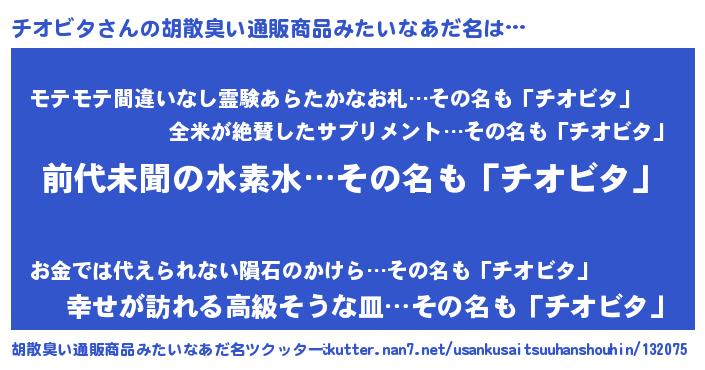 | ヘコむあだ名 | 『チオビタ(遠い目)』『チオにゅー』 |