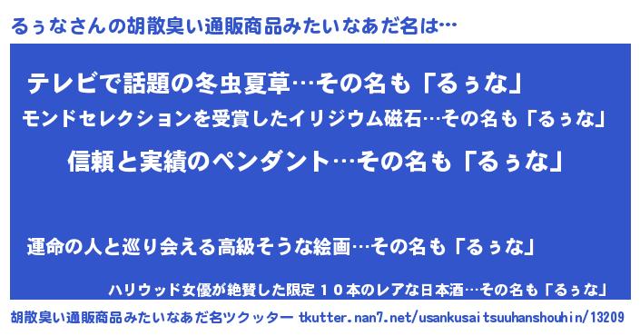 | 男性向けラノベタイトル風あだ名 | 『ダンジョンにるぅなを求めるのは間違っているだろうか』 |