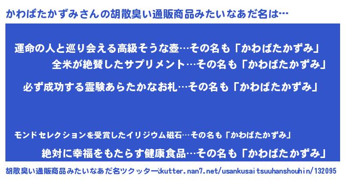 かわばたかずみさんの胡散臭い通販商品みたいなあだ名をツクッター!