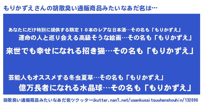 | 恥ずかしいあだ名 | 『もりちん』『プリティーもりかずえ』 |