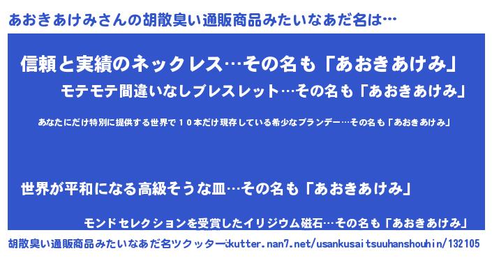 | 欧米人風あだ名 | 『ダレノガレあおきあけみ』 |