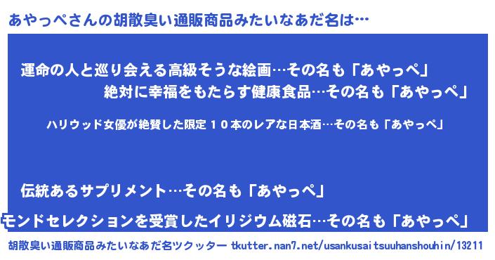 | 欧米人風あだ名 | 『ダレノガレあやっぺ』 |