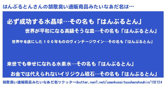 はんぶるとんさんの胡散臭い通販商品みたいなあだ名をツクッター!