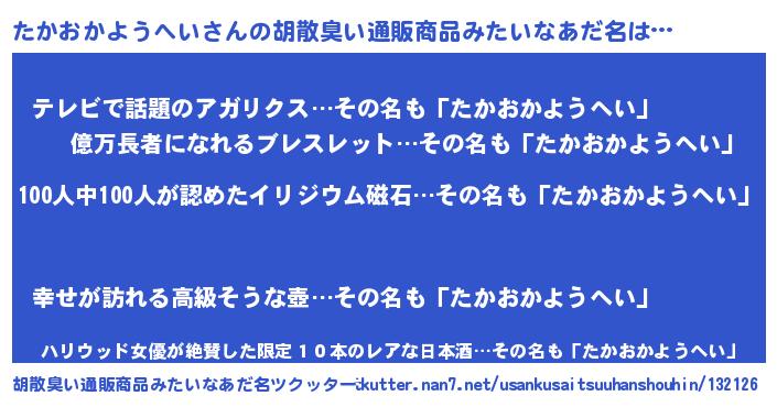 | 意味不明あだ名 | 『眠気覚ましガムたかおかようへい味』 |
