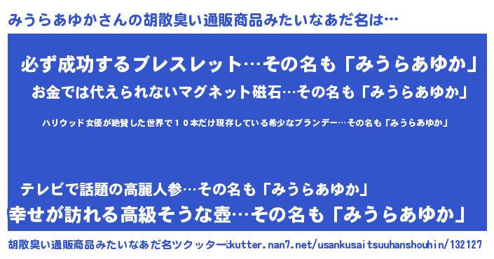 恥ずかしいあだ名 | 『プリティーみうらあゆか』『みうっちょ』 |