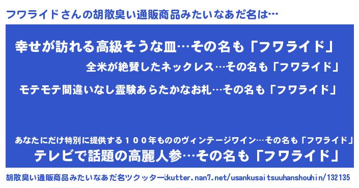 | ヒーロー風カッコイイあだ名 | 『スーパーフワライド』『幻影騎士フワ』 |