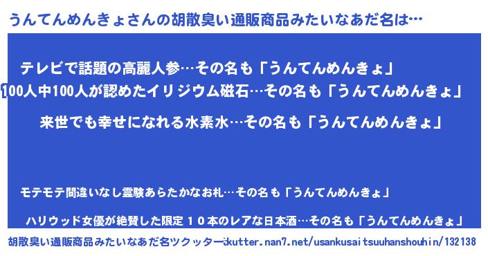 | 意味不明あだ名 | 『永久保存うんてんめんきょ』 |