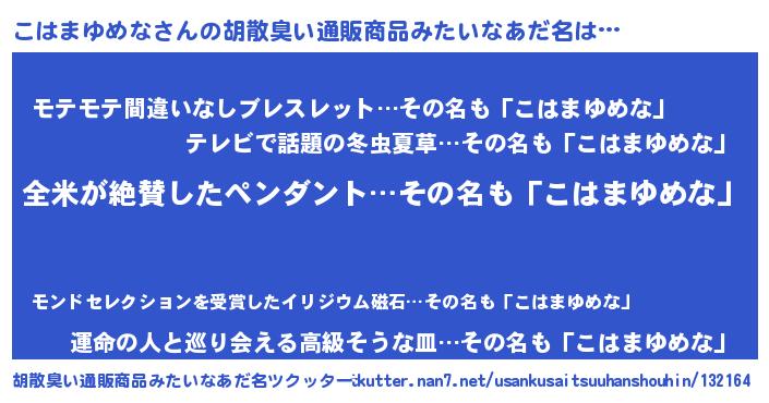 | 意味不明あだ名 | 『とにかく怪しいこはまゆめな』 |